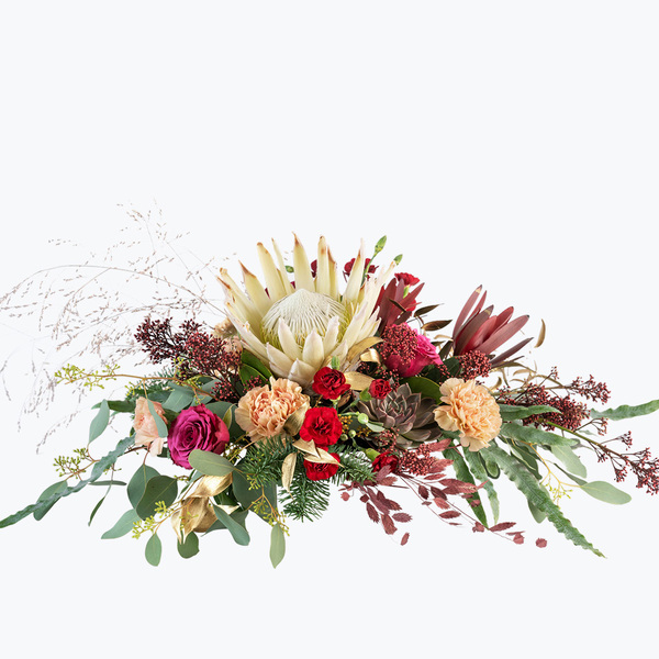 Ekslusiv dekorasjon fylt med en deilig miks av årstidens vakre skatter som garantert sprer glede til den heldige mottakeren. Gi julens confetti når du vil begeistre med et blomstrende fyrverkeri !